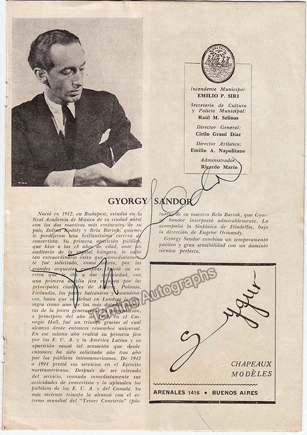 Gyorgy Sandor Autograph Signed Program Teatro Colon