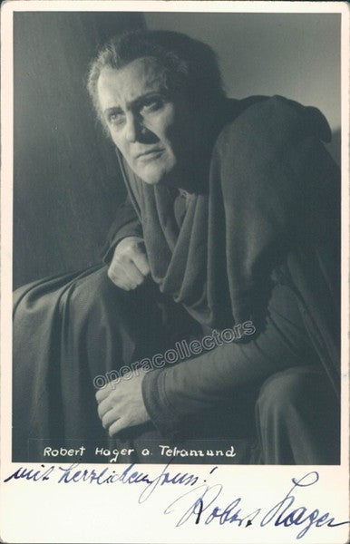 Signed photo postcard of the Luxembourgian baritone (1898-?), shown as Telramund in Lohengrin, 3.5 x 5.5 inches, in excellent condition