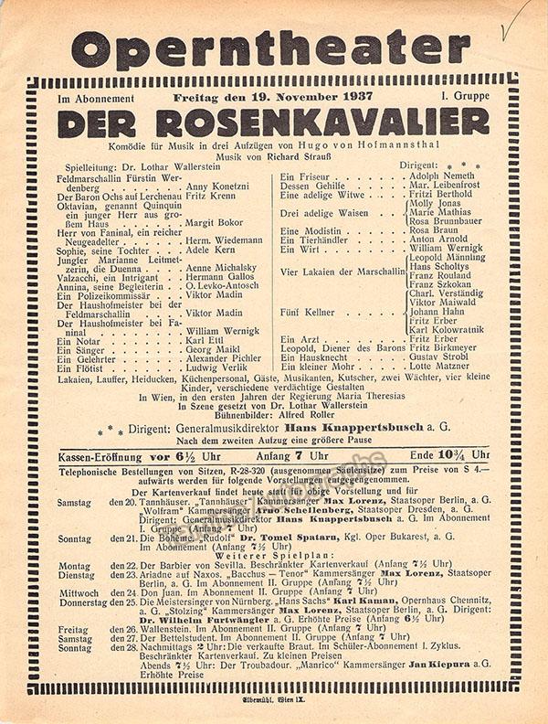 Knappertsbusch, Hans - Signed Photo Postcard & Program 1937 - Tamino Knappertsbusch, Hans - Signed Photo Postcard & Program 1937 - Tamino