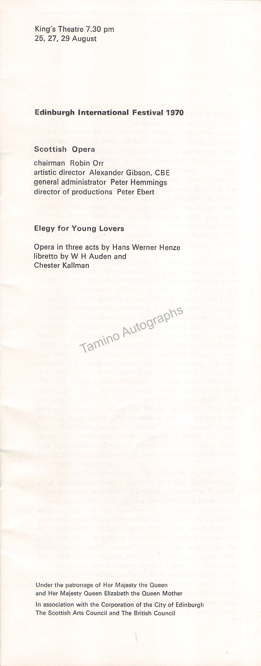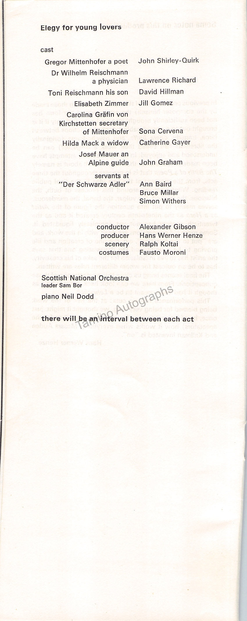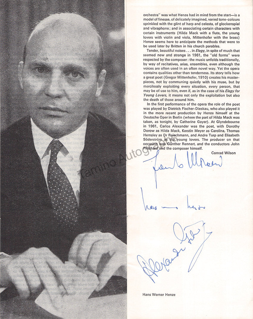 Henze, Hans Werner - Signed Program "Elegy for Young Lovers" 1970