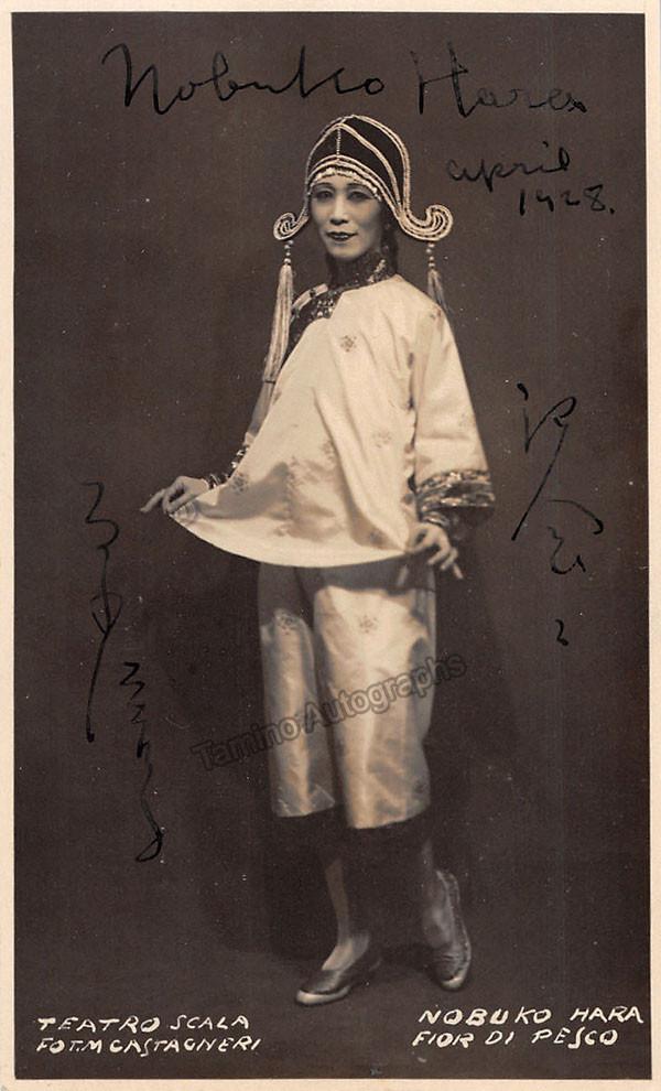 Japanese soprano, signed photo postcard, shown in role. Size is 3.35 x 5.25 inches, mounting traces on verso, otherwise in excellent condition.