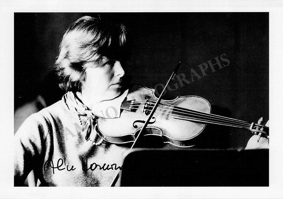 Austrian classical violinist (1930-2022), a pioneer in the movement of historically informed performance, along with her well-known husband, conductor Nikolaus Harnoncourt. Signed photograph, shown either in performance or rehearsal, size is 5 x 7 inches, in excellent condition.