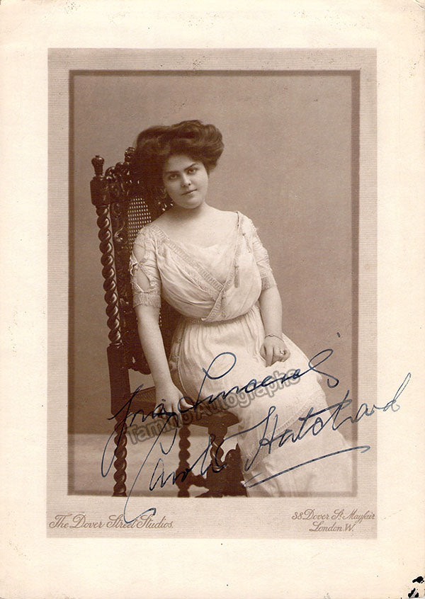English lyric soprano and later voice teacher (1883-1970), signed photograph, shown as herself, a photo by Dover Street Studios, London. Size is 5.75 x 8 inches, small creases and bends, otherwise in very good condition.
