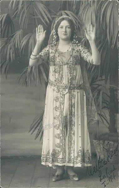 Signed photo postcard of the Austrian soprano (1888-1950), shown as Lakme, 3.5 x 5.5 inches. Also signed and handwritten by her on verso, in excellent condition