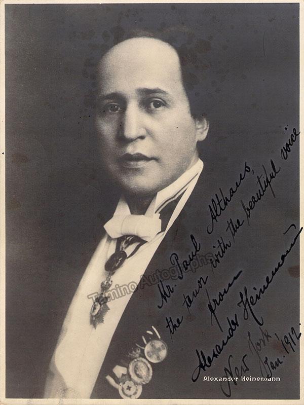 German concert baritone (1873-1919) known for oratorio and lieder performances, signed photo, shown as himself. Inscribed to famous American tenor Paul Althouse (misspelled as "Althaus"), signed in New York, dated in 1912. Very clear handwriting and signature. Size is 5.9 x 7.9 inches, in extremely good condition.
