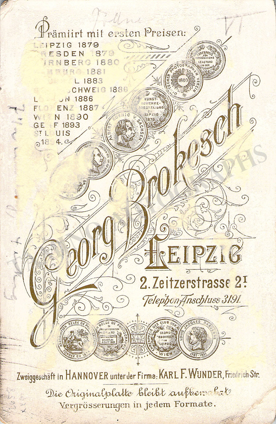 Gorgeous cabinet photograph of the composer by photographer Georg Brokesch (Leipzig). Size is 4.2 x 6.25 inches, crack over the lower-left corner, mounting traces on verso, otherwise in very good condition.