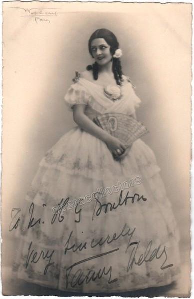Signed photo postcard of the Belgian soprano (1888-1973), shown as Violetta in La Traviata, 3.5 x 5.5 inches, inscribed, in excellent condition