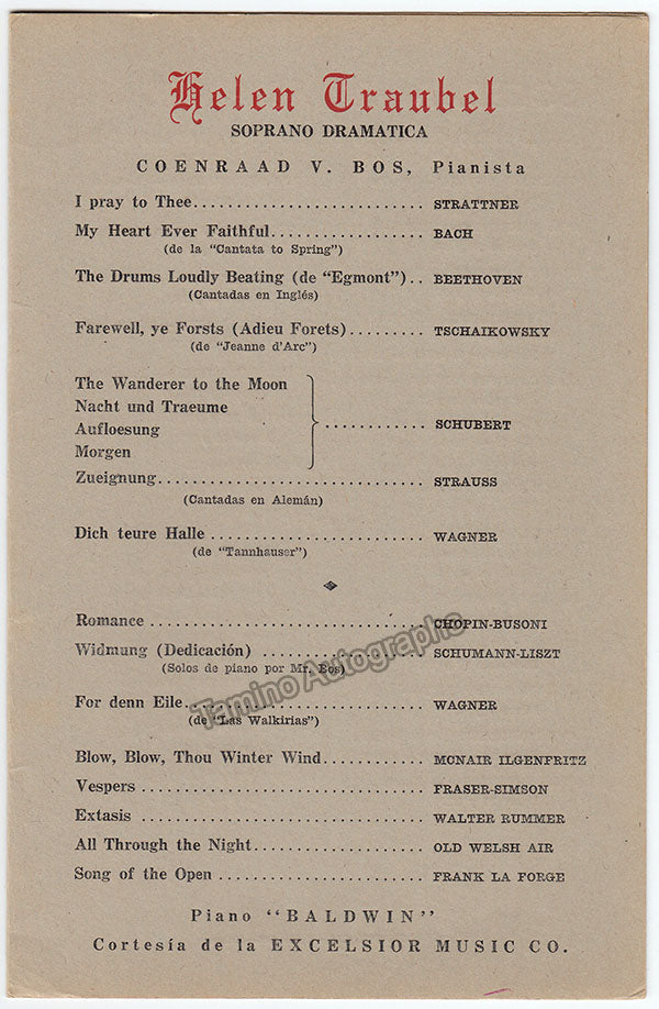 Traubel, Helen - Signed Program Havana 1948 Traubel, Helen - Signed Program Havana 1948