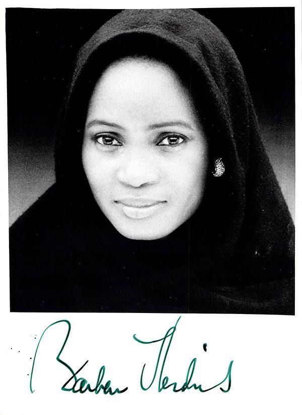 Signed photo, shown as herself. Photo by Dennis Berthier. Size is 4 x 6 inches, in excellent condition.