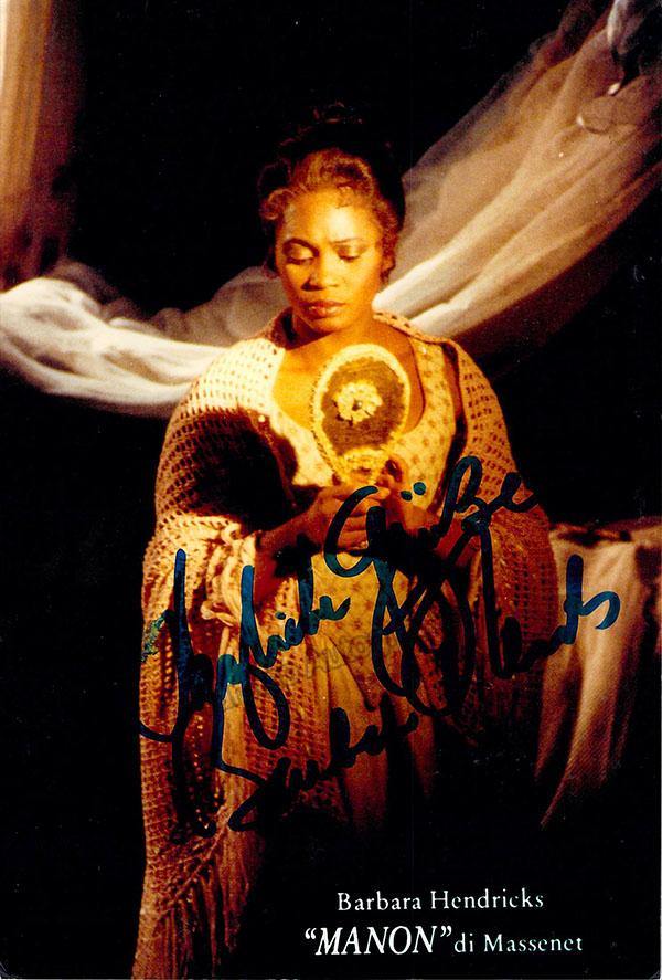 Signed photo, shown in title role of Massent's Manon. Size is 5 x 7.25 inches, in excellent condition.