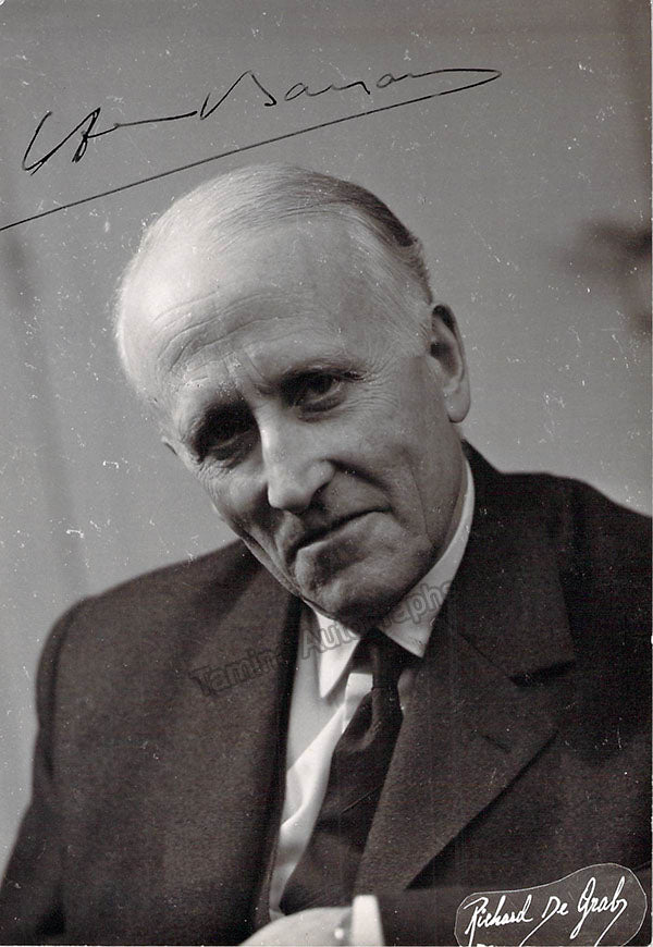 Beautiful black-and-white photograph signed by him, ink-stamped on verso by photographer Richard De Grab, Paris.  Size is 4 x 5,75 inches, in very good condition.