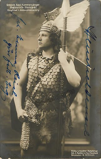 German tenor (1874-1935).  Signed photo postcard shown as Siegfried in Wagner's Der Götterdämmerung, inscribed.  Size  is3.25 x 5.25 inches, in very good condition.