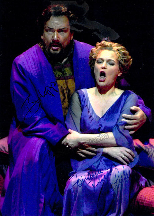 Canadian tenor (b.1956) and American soprano (1954-2006). Gorgeous photograph signed by both singers, shown in Berlioz's Les Troyens at the Metropolitan Opera, New York in 2003. Size is 5 x 7 inches, in excellent condition.