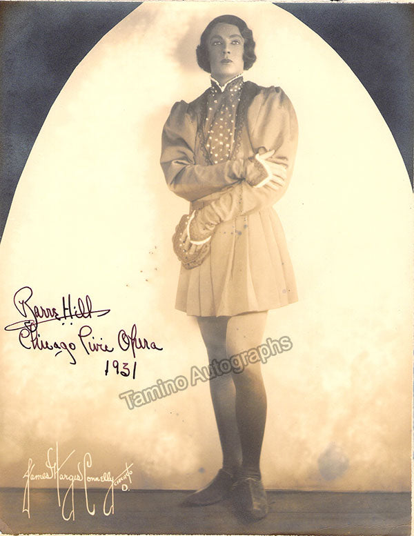 Baritone particularly closely associated with the Chicago Civic Opera from 1929 to 1932. Signed photograph, shown as Pelleas in Debussy's Pelleas et Melisande. Bold handwriting and signature, dated in Chicago in 1931. Printed signature on front of photographer James Hargis Connelly, Chicago. Size is 7.25 x 9.5 inches, some paper loss on far edges, otherwise in excellent condition.