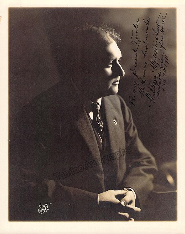 American baritone (1867-1947), later known as a compiler of Quaker genealogical records. Signed photo, inscribed at the Metropolitan Opera, New York, dated in 1911. Photo by Gross, Chicago. Size is 7.75 x 9.75 inches, slight stain on verso, otherwise in excellent condition.