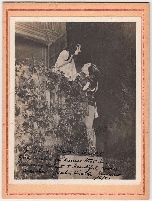 Scottish tenor (1884-1977), signed photograph, shown in role. Inscribed and dated in Milan in 1923. Clear handwriting and signature. 6 x 7.75 inch photograph mounted onto solid cardboard, total item size is 6.75 x 9 inches, in excellent condition.