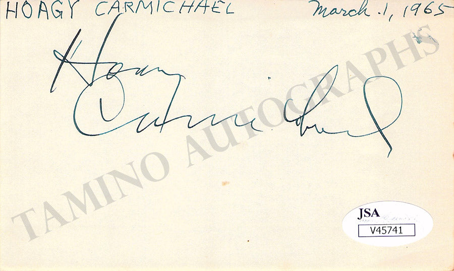 Card signed by him. Size is 5 x 3 inches, authentication sticker by JSA over the lower-right corner; in excellent condition.