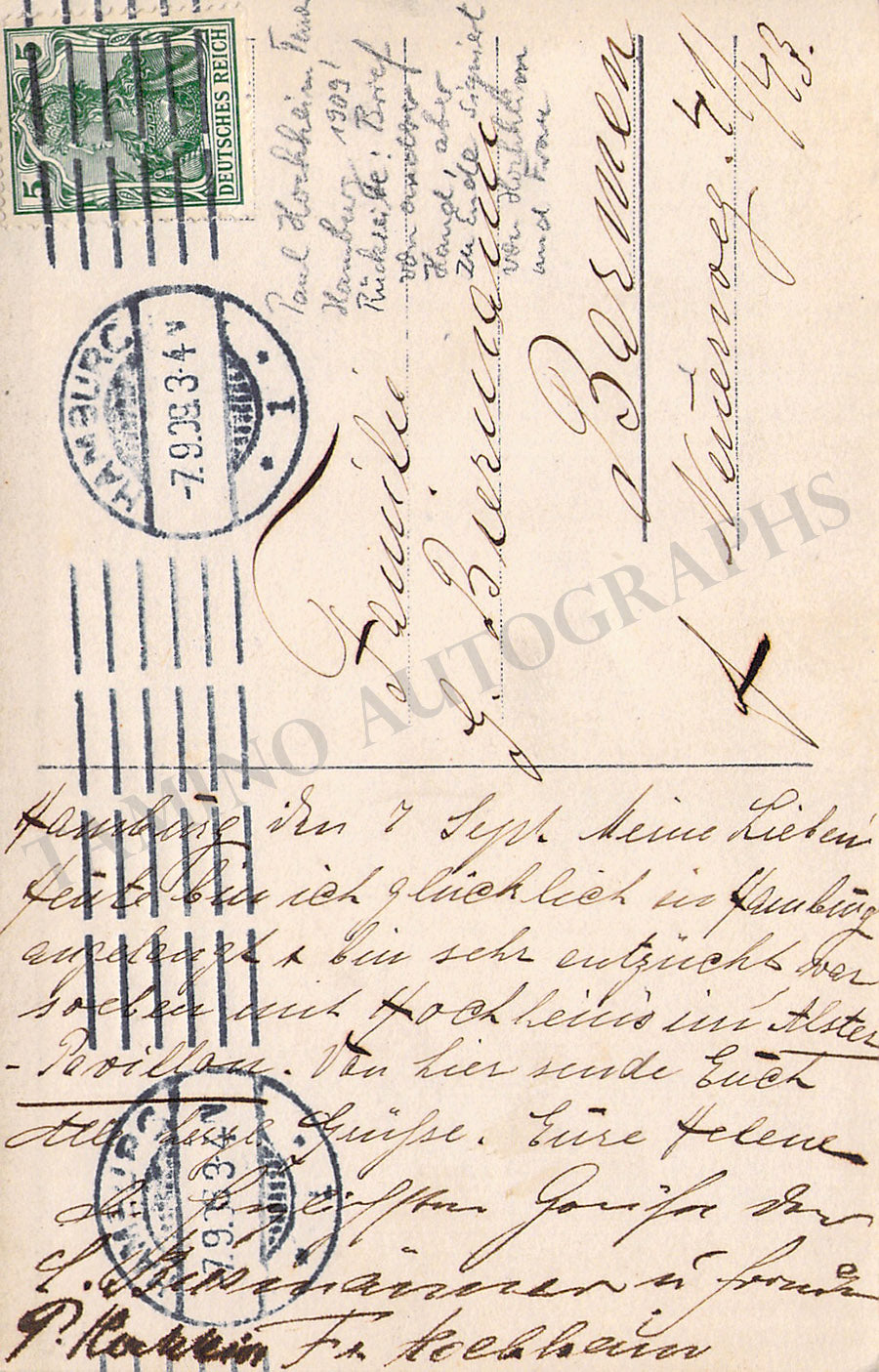 German tenor (1879-1944), signed postcard photograph, shown as himself, signed and extensively inscribed on verso. Size is 3.5 x 5.5 inches, in excellent condition.