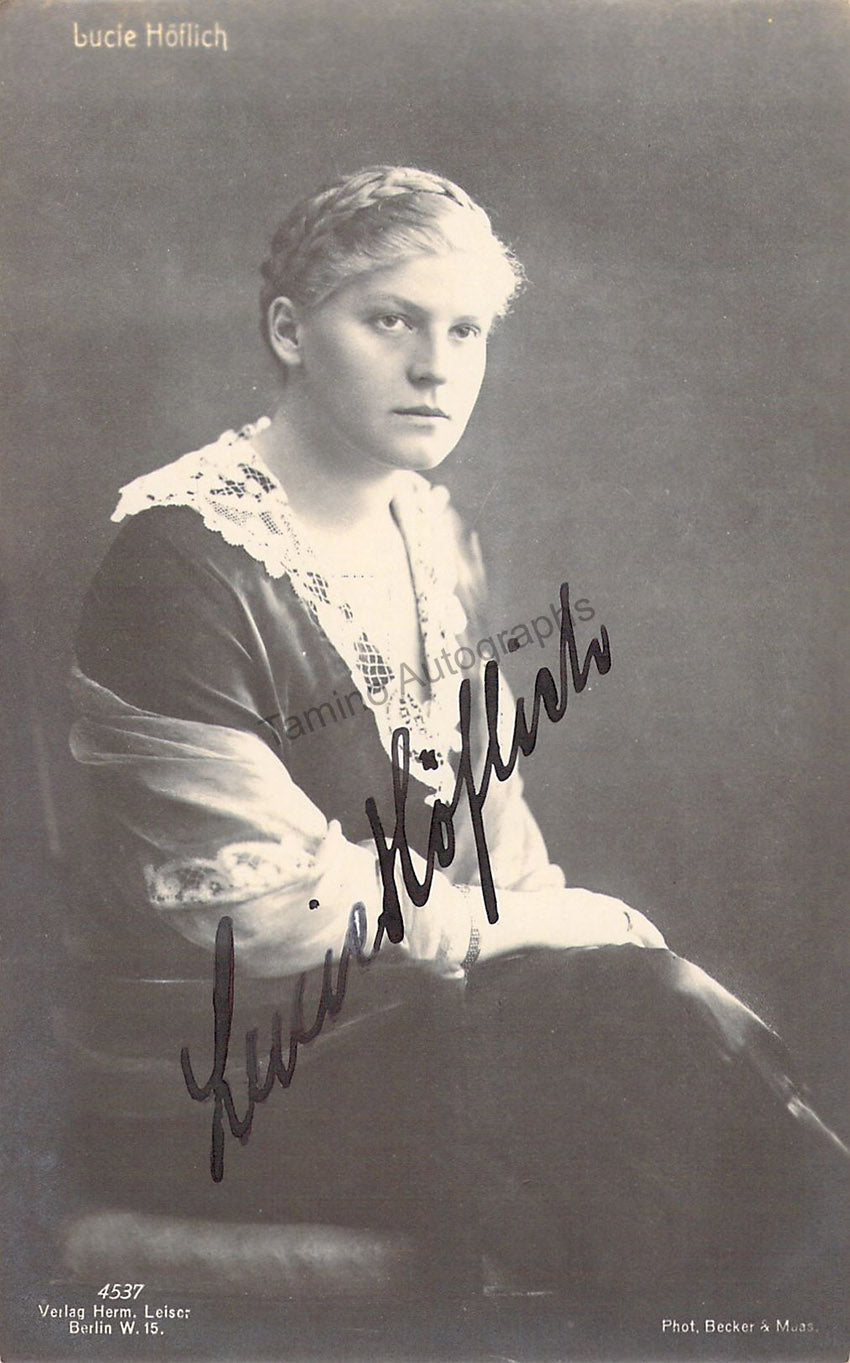 Beautiful photo postcard signed by her, shown young. Size is 3.4 x 5.3 inches, minor silvering on borders, otherwise in excellent condition.