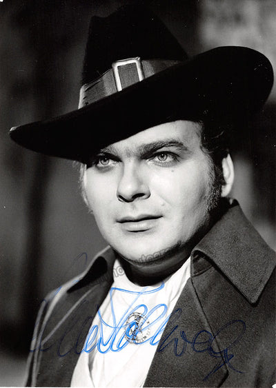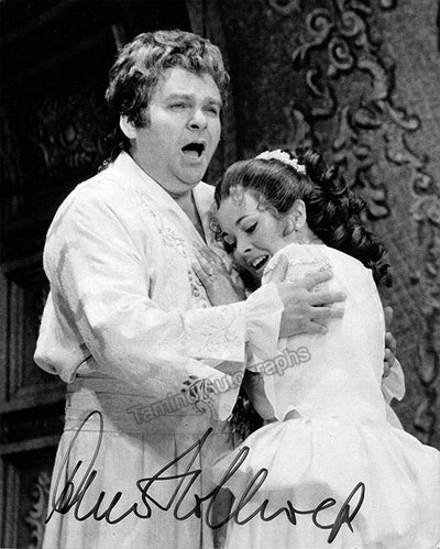 Signed photograph, shown in the title role of Mozart's Clemenza di Tito with Georgine Resick as Servilia. Stamped on verso by photographer George Farret, Marseille. Size is 8 x 10 inches, in excellent condition.