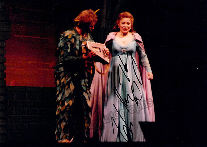 Beautiful color photograph signed by her, shown as Pamina in Mozart's "Die Zauberflöte" at The Metropolitan Opera.  Size is 7 x 5 inches, in excellent condition.