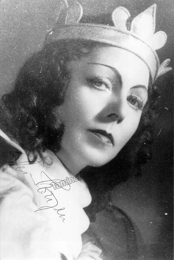 Signed photo, shown in title role of Bizet's Carmen. Stamped on verso by photographer Carmen, Buenos Aires. Size is 3.5 x 5.5 inches, in excellent condition.