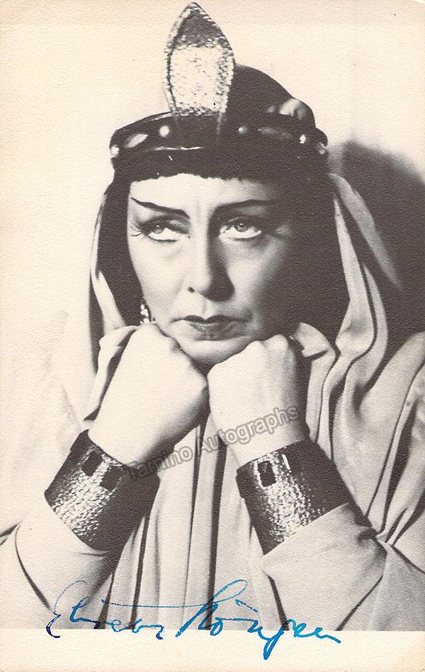 Signed photo postcard, shown as Amneris in Verdi's Aida. Signed on front with inscription on verso, dated in 1942. Photo by Berger, Dresden. Size is 3.75 x 5.5 inches, in excellent condition.