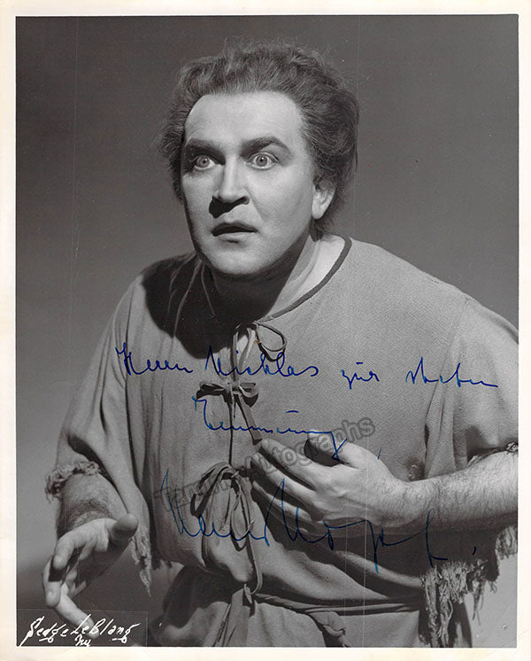 Signed photograph, shown in role, inscribed. Stamped on verso by photographer Sedge Le Blang, Metropolitan Opera, New York. Size is 8 x 10 inches, small creases on edges, otherwise in very good condition.