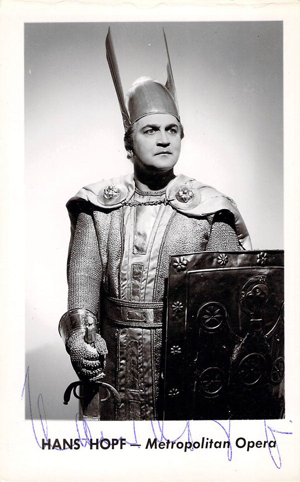 Black-and-white promo photo postcard signed by him, shown as Lohengrin in Wagner's opera. Size is 3.4 x 5.5 inches, in excellent condition.