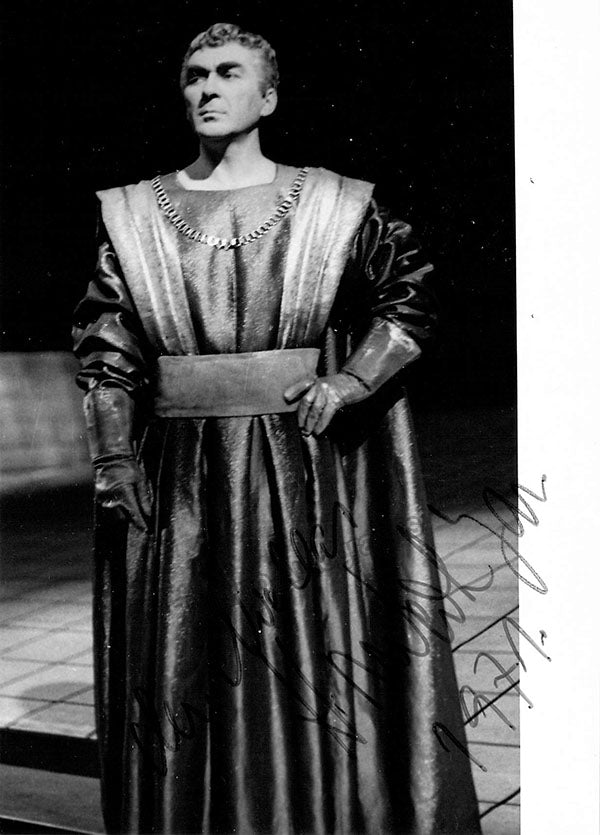 Czech bass (1926-2011), signed photograph, shown as Telramud in Wagner's Lohengrin, dated in 1971. Size is 4.25 x 5.75 inches, in excellent condition.