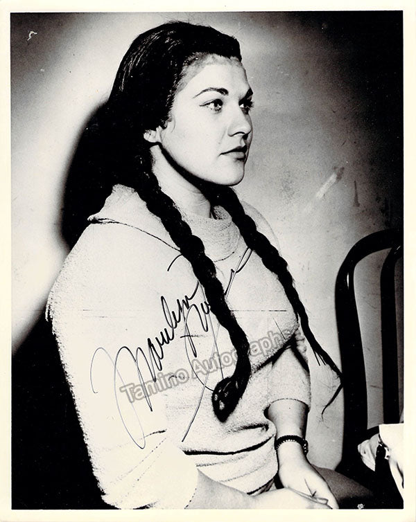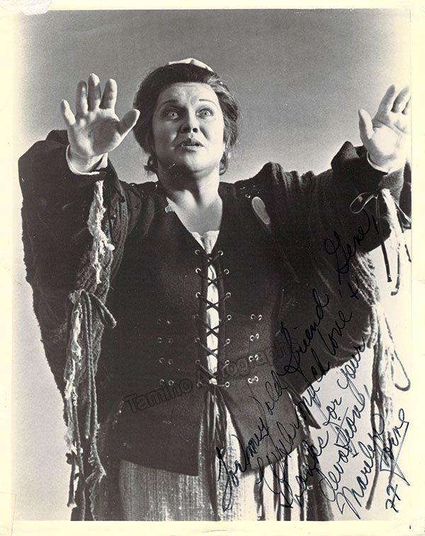 Signed photograph, shown as Fides in Meyerbeer's Le Prophete, inscribed with sentiment, dated in 1977. Size is 8 x 10 inches, slight creases and paper loss on edges, otherwise in good condition