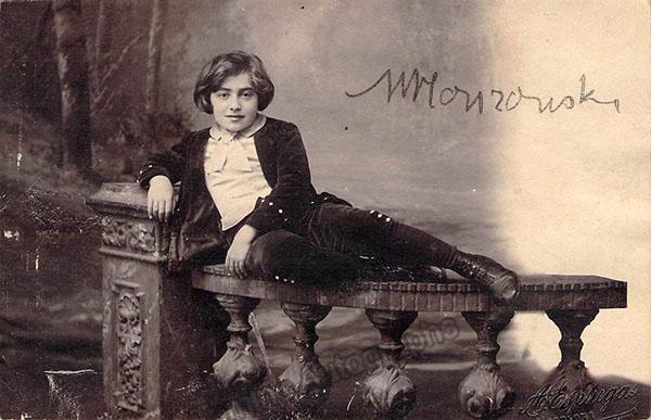 Beautiful photo postcard signed by him, shown very young. Size is 5.25 x 3.5 inches, mounted traces on verso in very good condition.