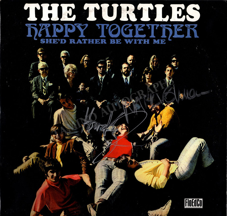 LP record sleeve for their album "Happy Together" with the band "The Turtles" signed by both artists (no record included). Size is 12.25 x 12.25 inches, in excellent condition.