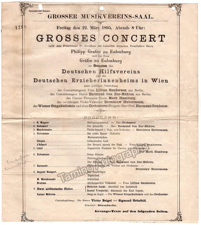 Huberman, Bronislaw - Concert Program Vienna 1895