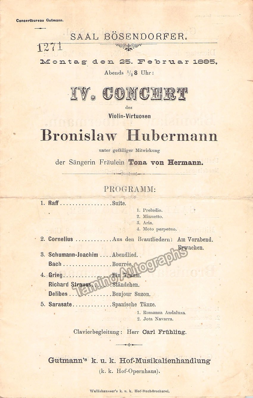 Huberman, Bronislaw - Concert Program Vienna 1895