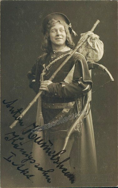 German baritone (1872-1932).  Signed photo postcard shown as Königsohn in Königskinder (opera by Humperdink).  Stamped on front by photographer Alex Mohlen, Hannover.  Size is 3.5 x 5.5 inches, in excellent condition.