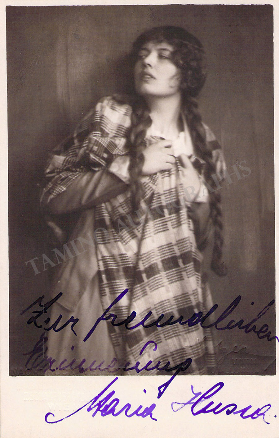 Austrian soprano (1893-1980), signed postcard photograph, shown as Micaela in Bizet's Carmen. Blind stamped on front by both photographer Pfitzner, Vienna and Magasin Metropole photo studio, Vienna. Size is 3.25 x 5 inches, in excellent condition.