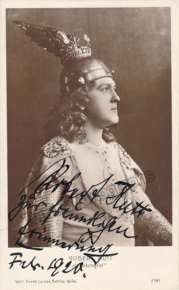 German tenor (1878-1942), signed photo postcard, shown in the title role as Lohengrin, dated in 1920. Size is 3.25 x 5.25 inches, in excellent condition.