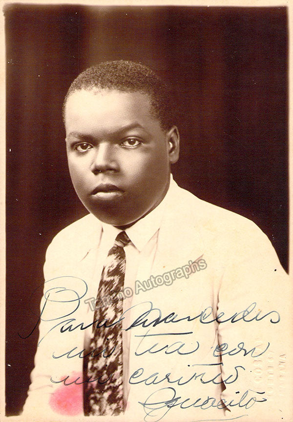 Fine sepia photograph signed by him with his nickname "Ignacito", inscribed, shown young. Size is 4.6 x 6.7 inches, mounting traces on verso, in excellent condition.
