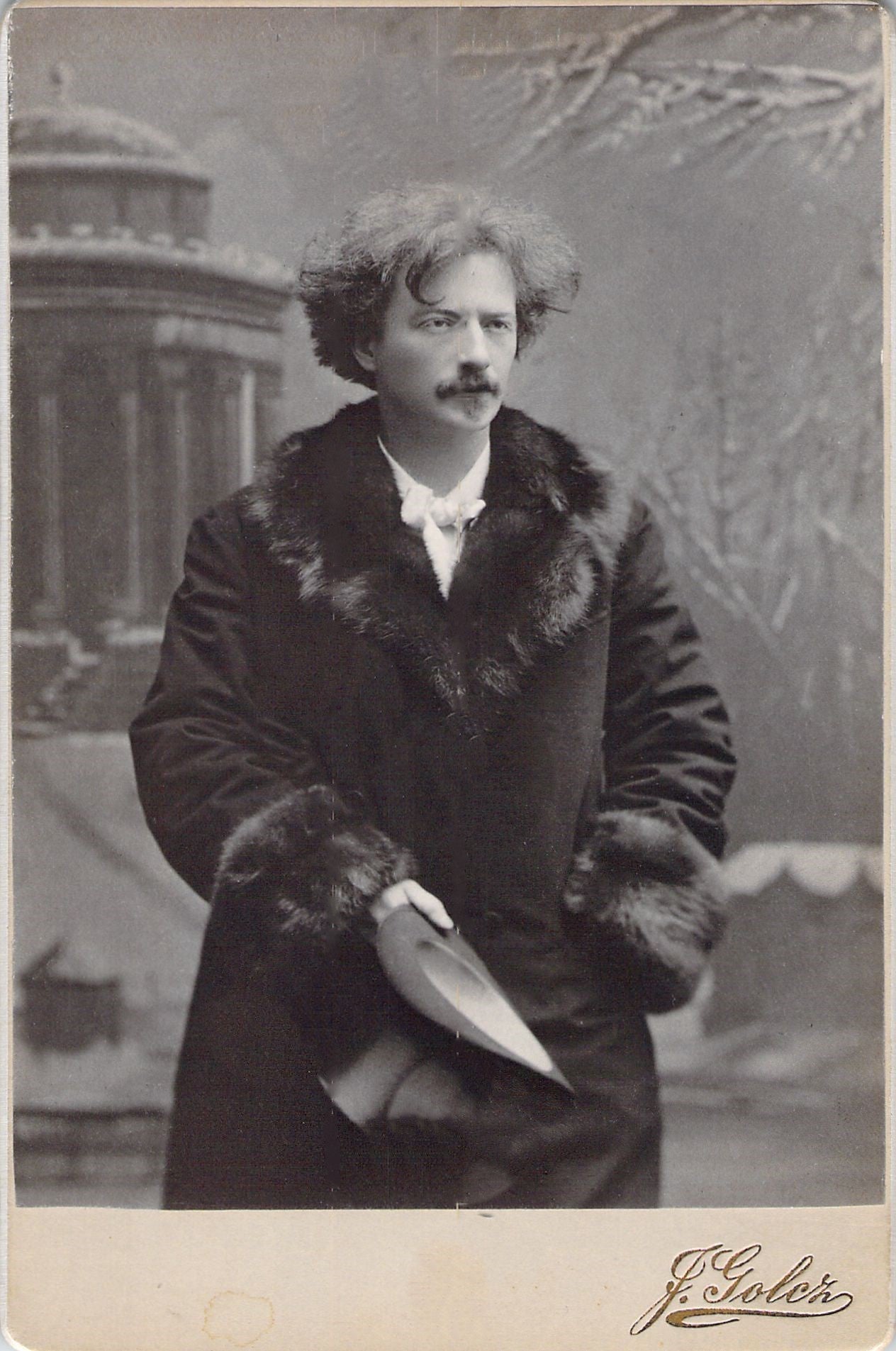 Gorgeous cabinet photograph of the composer by photographer Jadwiga Golcz (Warsaw). Size is 4.2 x 6.3 inches, in excellent condition.
