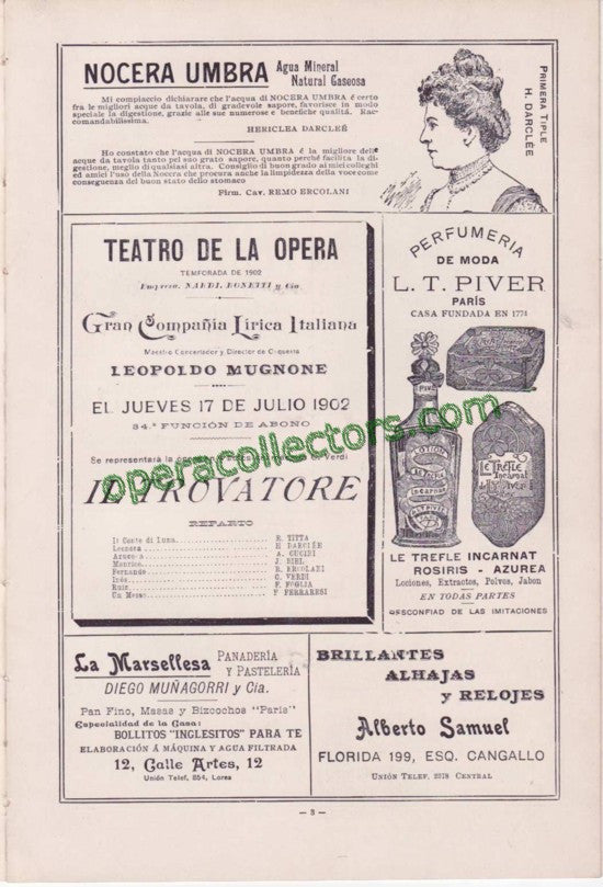 IL TROVATORE - Teatro de la Opera program 1902 - Ruffo & Darclee