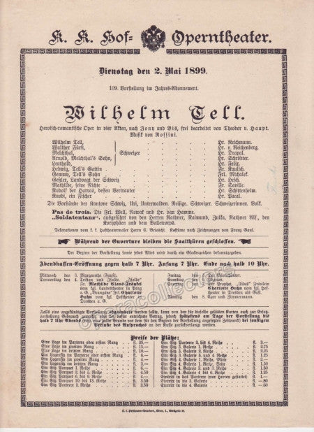 Imperial & Royal Court Opera Playbill - Gotterdammerung - Dec. 8th, 1899