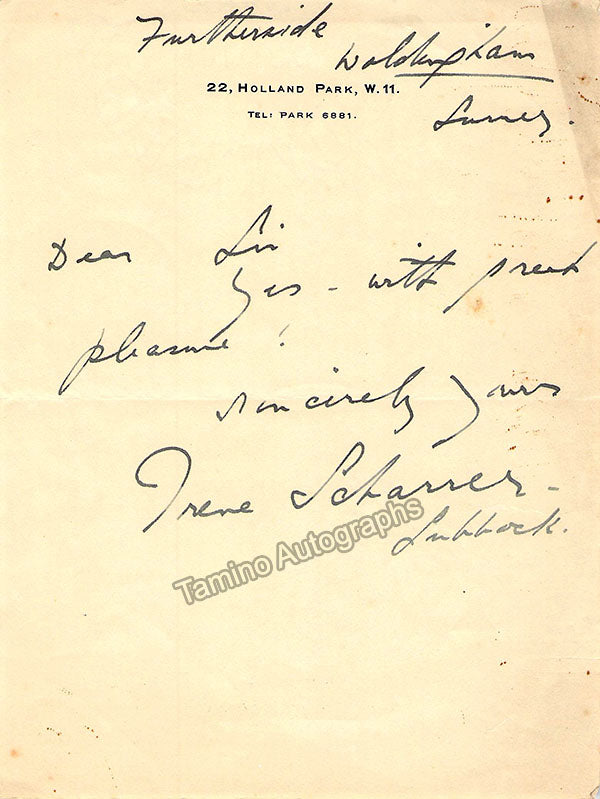Autograph note signed by her. Size is 5.25 x 6.9 inches, in excellent condition.