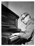 ALSO INCLUDED is an unsigned press photograph of the composer by AP News, shown performing at the piano at age 72.  Size is 6.8 x 9 inches, large crease over the lower-right corner, in very good condition.