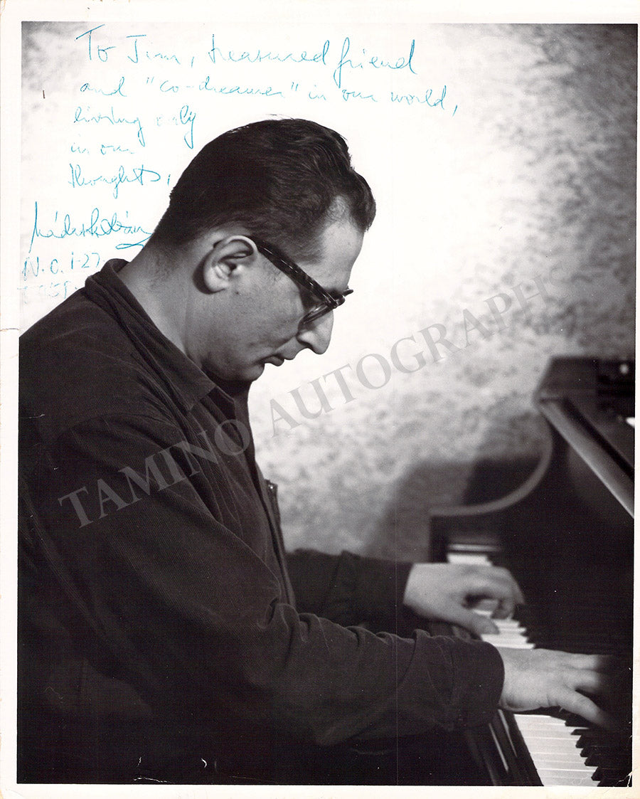 Fine black-and-white photograph signed and inscribed by him with a long sentiment, dated in New Orleans, 1959, shown in rehearsal.  Size is 7.9 x 9.9 inches, minor cracks on borders, in overall very good condition.