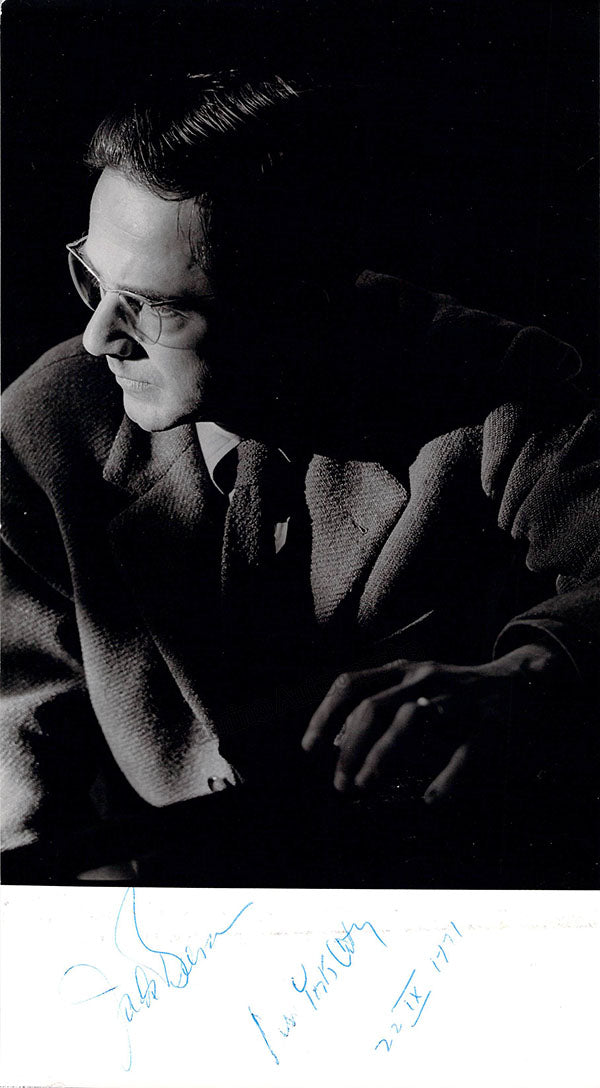 Beautiful black-and-white photograph signed by him, dated in New York, 1971; ink-stamped on verso by photographer William E. Barksdale (New York). Size is 6.1 x 9.1 inches, in excellent condition.
