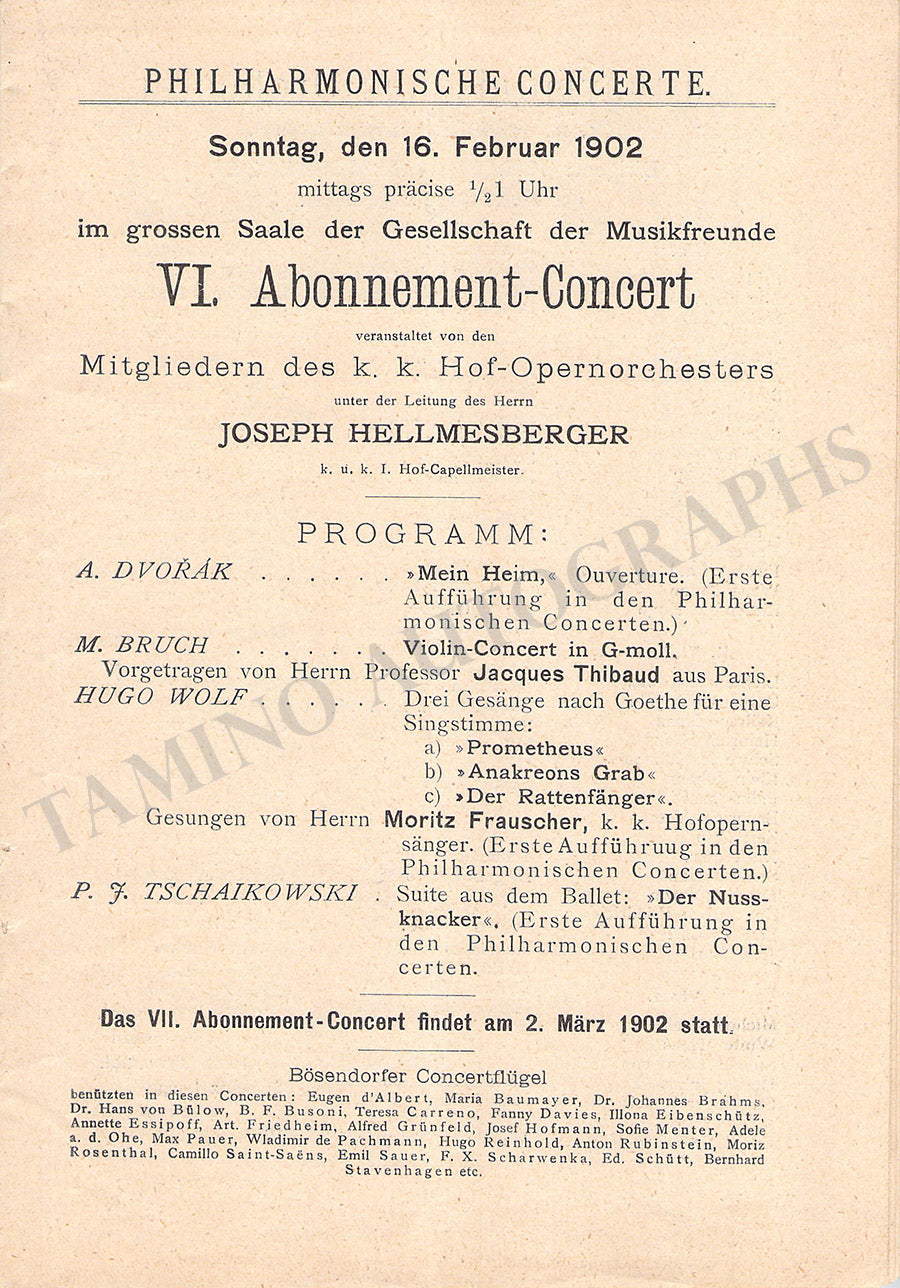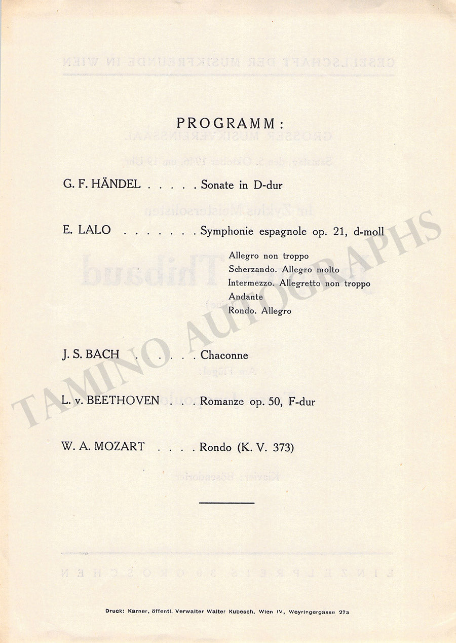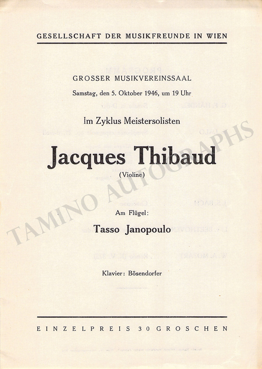 Thibaud, Jacques - Set of 2 Concert Programs Vienna 1902 & 1946 Thibaud, Jacques - Set of 2 Concert Programs Vienna 1902 & 1946 Thibaud, Jacques - Set of 2 Concert Programs Vienna 1902 & 1946