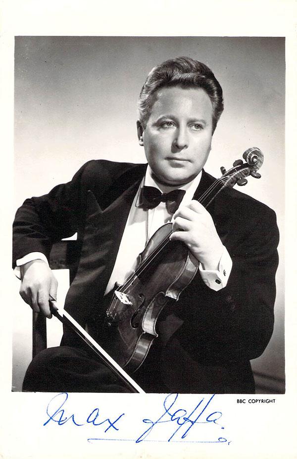 British light orchestral violinist and band leader (1911-1991), signed photo, shown with his instrument. Size is 3.5 x 5.1 inches, in excellent condition.