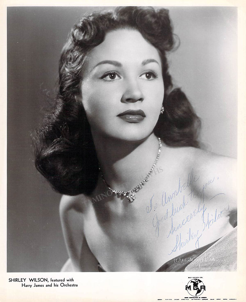 ALSO INCLUDED are two promo photographs signed by two musicians of his band: Shirley Wilson (singer) and Dick Williams. Both photographs are inscribed with short sentiments, each one's size is 8.1 x 9.9 inches, both in excellent condition.