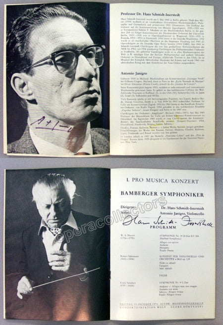 Signed picture (portrait) 21 x 14.5 cm in program co-signed by HANS SCHMIDT ISSERSTEDT signature on program page next to full page picture (conducting) Bamberg SO 13. Oktober 1972. Mint condition.